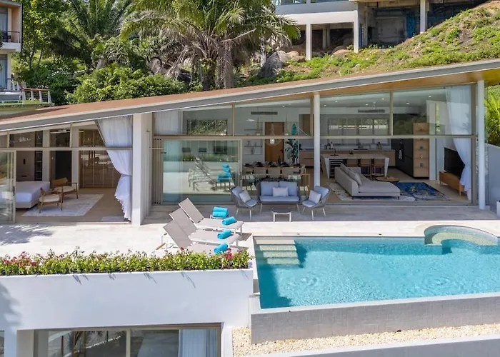 Featuring a private pool for guests' relaxation, Villa Oksana, Luxury 4-Bedroom Sea View Villa Ban Thung is located approximately a 10-minute drive from Buffalo Fighting. Featuring a terrace, the Ban Thung villa is situated 4.1 km from the Na Muang Waterfall.